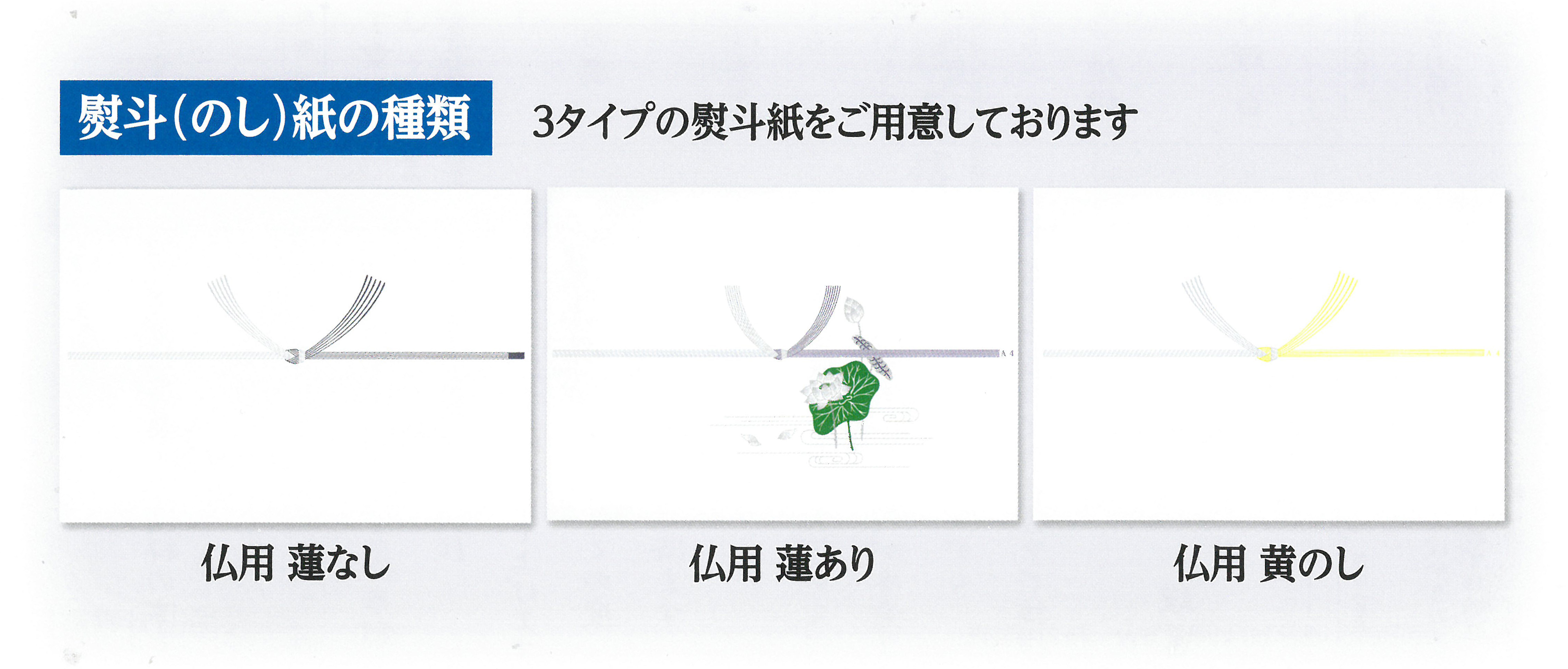 ※熨斗紙の種類は買い物でコーナーでお受けします
